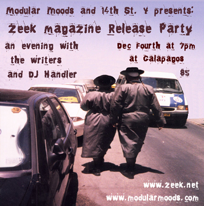 Thursday, April 7 7:30 PM Makor 35 West 67th Street New York City Join Zeek magazine to celebrate the publication of its Spring, 2005, issue with readings and performances by some of the talented, deluded, mystical, and bizarre musicians, performers, artists and writers who have graced its pages over the years.